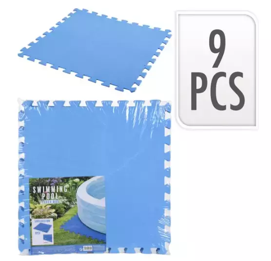 Zorg voor een goede ondergrond voor jouw opblaasbare zwembad met deze zwembadtegels. Dankzij de antislip laag staat het zwembad beter op de ondergrond en heb je meer grip met het in- en uitstappen. In totaal worden er negen tegels geleverd.